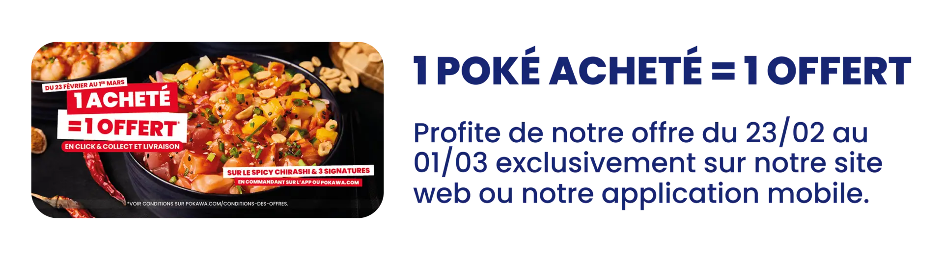 Cette semaine profite de notre offre exclusivement sur l’application Pokawa et pokawa.com